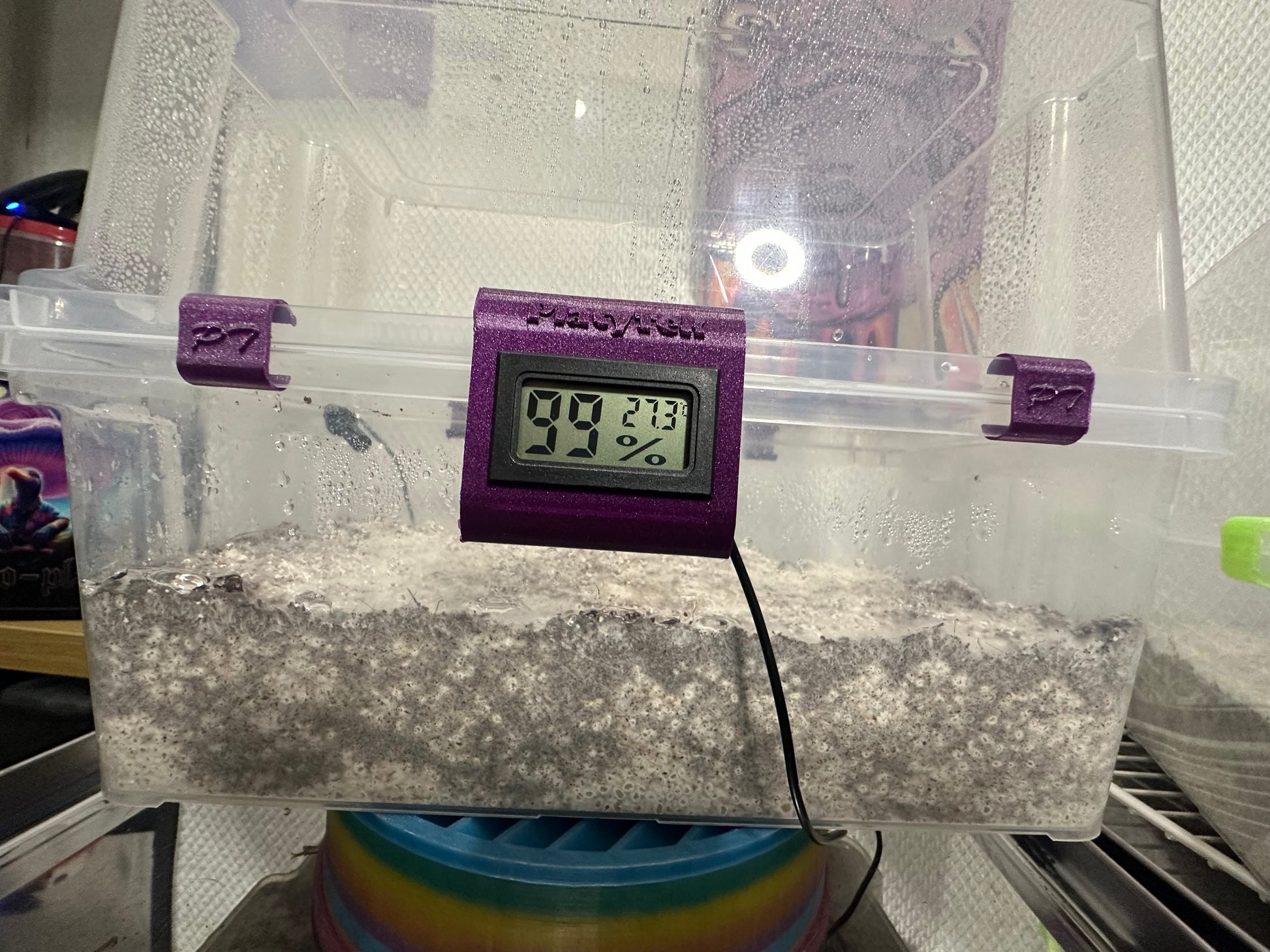 The PlatyTek: Hygometer gives you a clean, integrated way to monitor your fruiting chamber at a glance.